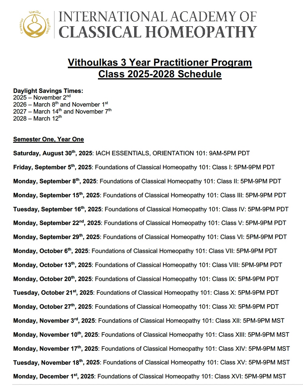 The detailed Vithoulkas Program Class Schedule can be viewed here.